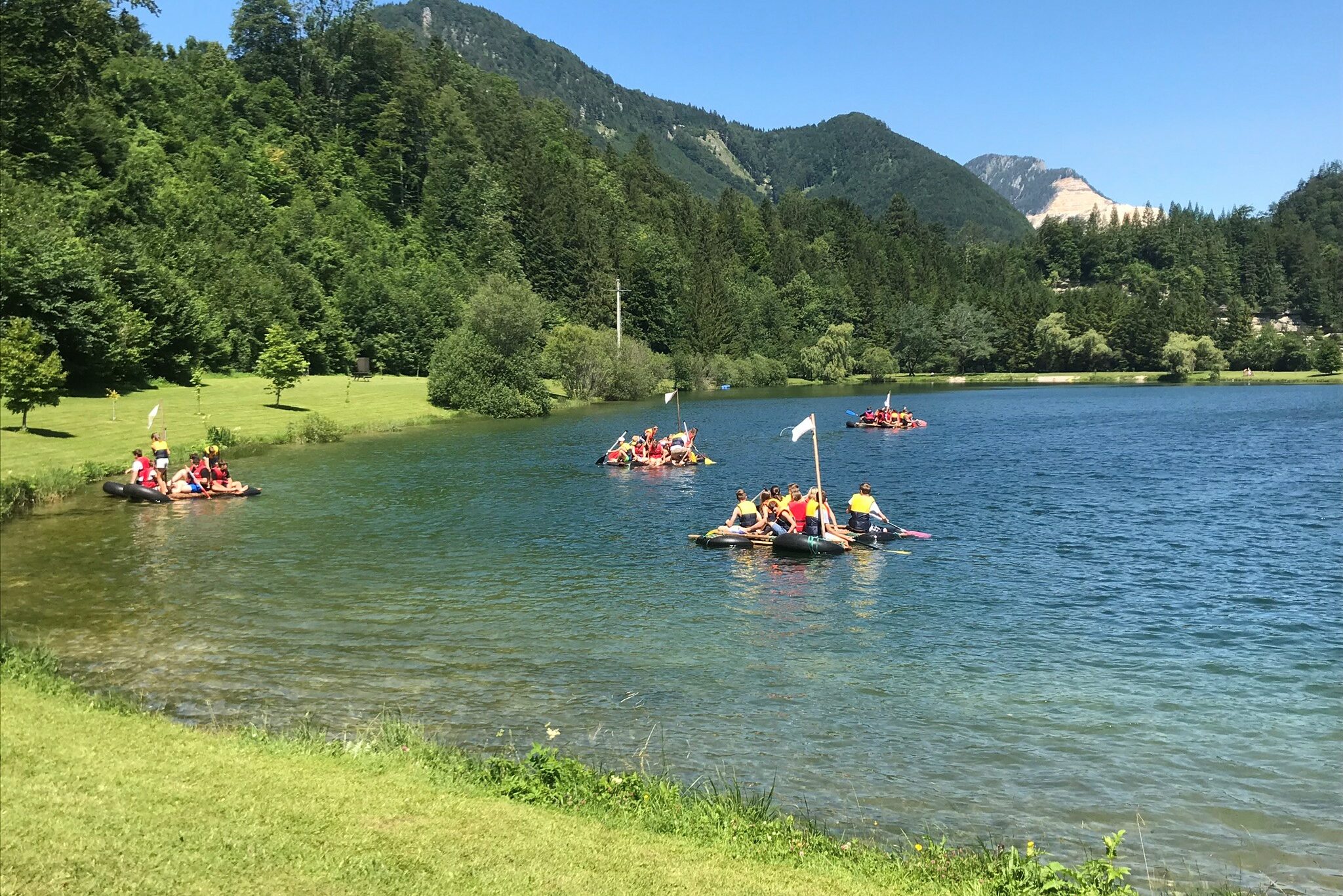 Gemeinsam tüfteln, gemeinsam bauen, gemeinsam ablegen! Mit bereitgestellten Materialien werden Flöße gebaut und dann auf dem Schlesingerteich ausführlich getestet. Kreativität ahoi!